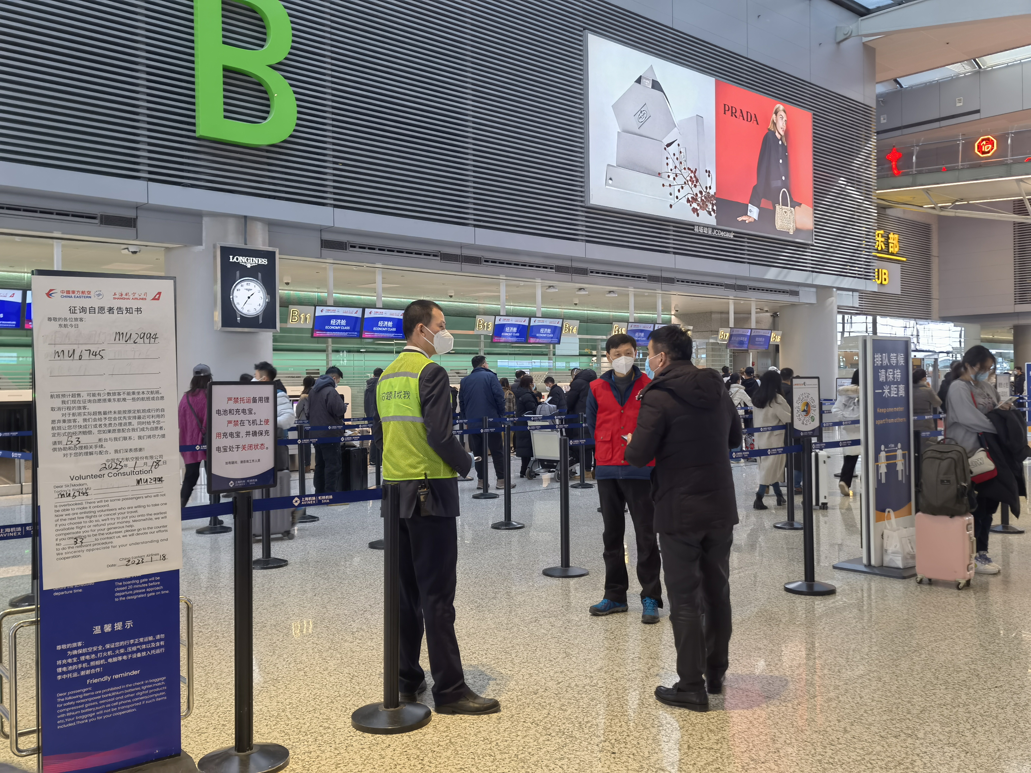 在东航地面服务部,还有一位19年未在家过春节的东航人——东航地服部虹桥旅客服务中心离港一分部高级副经理钱赟。大年夜这天,他穿梭于值机柜台、登机口……带领团队同事随时响应航班保障现场需要帮助的旅客。