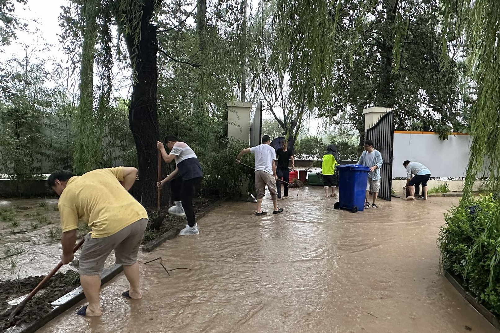 华润置地北京悦府一期项目部组织近百人的应急抢险突击队,并安排2台挖掘机等大型机械24小时应急值守,同步储备相应救生衣、雨衣、雨鞋、铁锹、照明灯和防汛沙袋等防汛物资,确保在第一时间处置汛情。