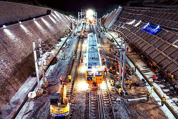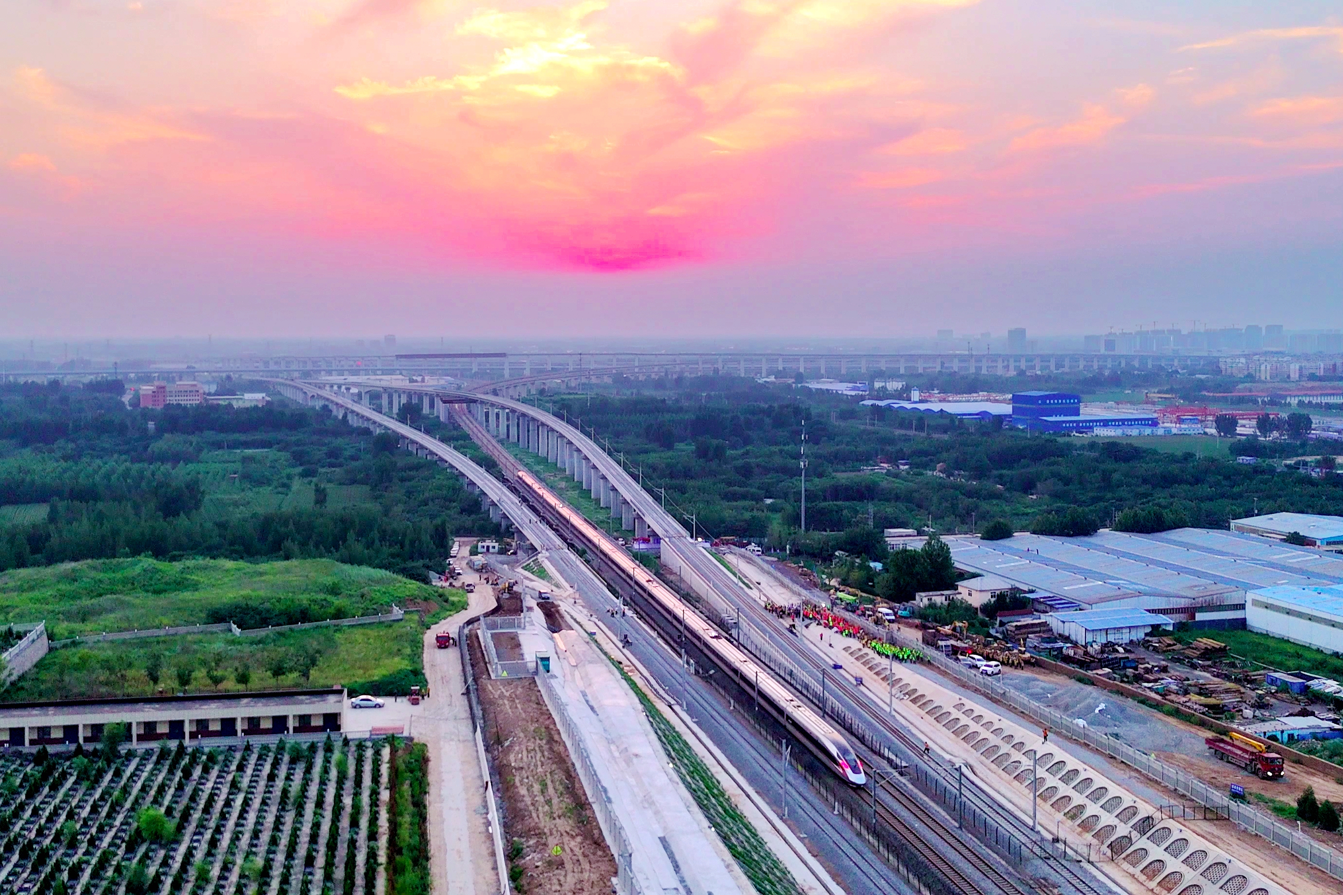 插铺施工完成后,列车驶过京济联络线