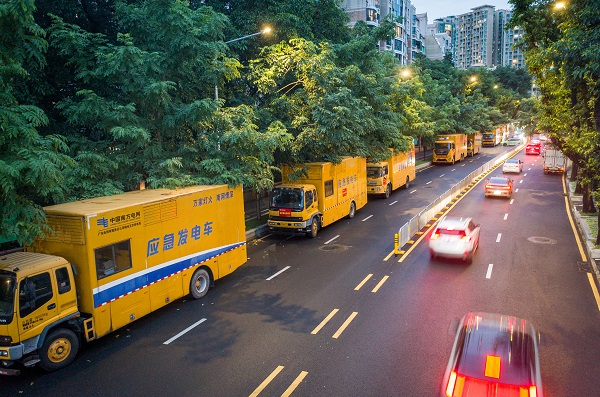9月10日,来自广东、广西的124台应急发电车全部到达深圳罗湖,投入抢修复电。
