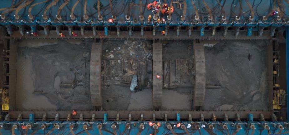 长江口二号古船犹如一颗“时间胶囊”,记录长江黄金水道航运的繁荣。“水下考古一直是世界难题,长江口二号古船的考古工作更具挑战性,因为古船一旦从水下泥沙中取出,原本环境中的微生物平衡就被破坏,文物极易迅速劣化。”中国电科科技人员介绍,为解决这一难题,科研人员为长江口二号古船定制研发智能文物保护舱。