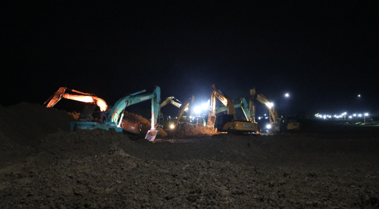 各部门各单位第一时间组织在岳机械设备待命,构筑岳阳市华容县险情第三道防线——君山区良心堡堤坝。当晚11时许,夜幕下的良心堡镇灯火通明,第一批500余名施工人员迅速抵达现场,300余台大型机械设备也相继到位。