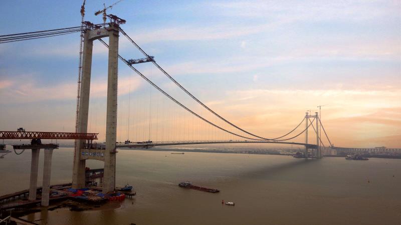 1月9日,随着最后一片钢箱梁的吊装完毕,世界上最宽的钢箱梁悬索桥——虎门二桥大沙水道桥成功合龙。