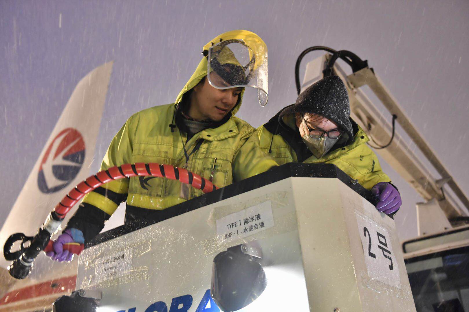 本轮雨雪天气影响了合肥、南京、杭州、上海等地,而这也是东航运力投放较多的区域。东航及时启动应急响应机制,密切关注天气变化,动态研判恶劣天气对航班运行产生的不利影响,投入充足的除防冰保障资源。为确保航班安全,东航一线员工从24日开始连续奋战,严格按照除防冰大纲要求,保证每一架飞机不带冰雪霜起飞。东航提前对机队的除防冰作业制定了排序计划,并与机场方面保持密切沟通,机组人员、地面保障人员对可能出现的跑道结冰情况予以充分准备。