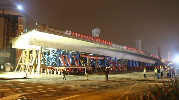 3月16日凌晨,长67.5米、重约3050吨的世界最大吨位单体桥梁缓缓移动,由上海城投公路投资(集团)有限公司投资管理,中国交建下属中交二航局承建的上海S26入城段7标北翟高架桥快速拆除移运工程,该节段箱梁的拆除耗时仅1小时,总移位距离达35米,实现了世界最大重量桥梁在市区一次拆除移运。