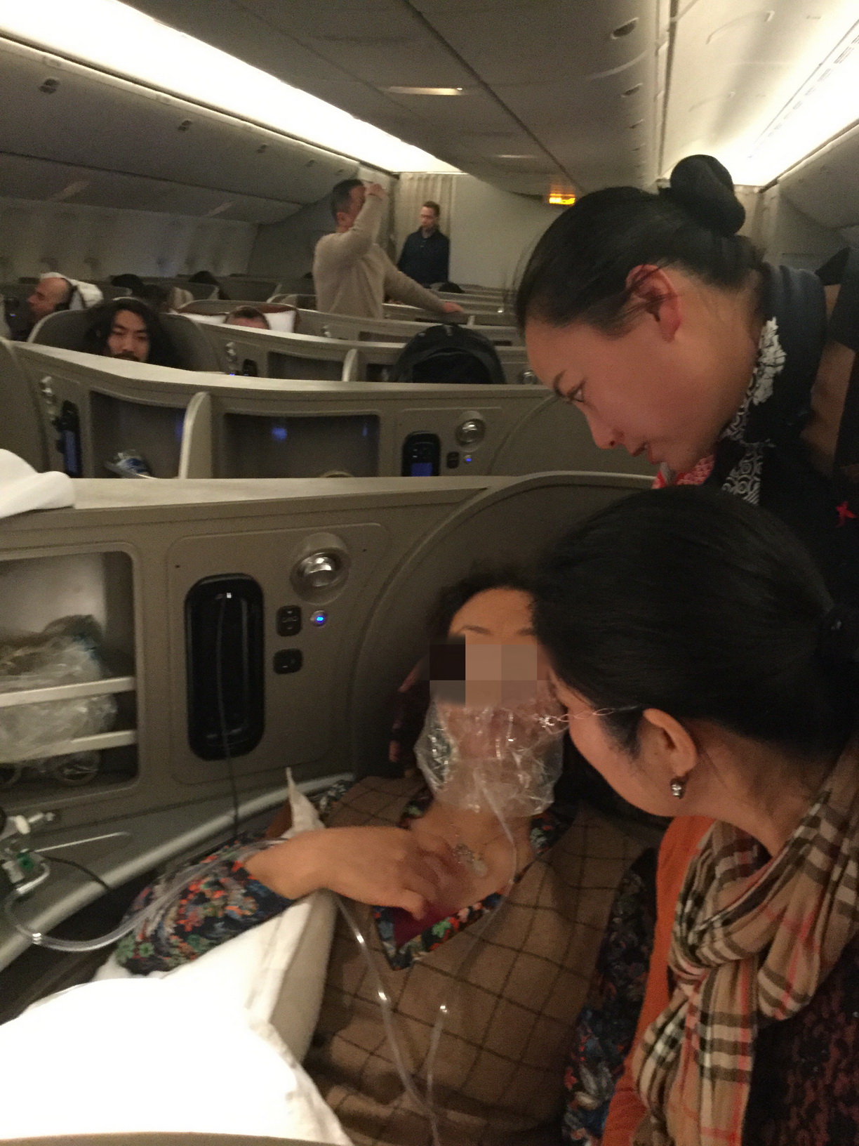 飞行途中,这名旅客突然感到身体不适,出现呼吸困难,一度抽搐昏迷,情况十分危急。东航机组第一时间实施了紧急救治,并将她从经济舱转移到公务舱平躺休息,还通过机上广播寻找到一名医生共同参与救治。