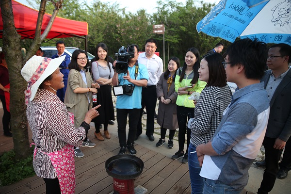 专家媒体采访团在樱花园项目现场采访受惠村民