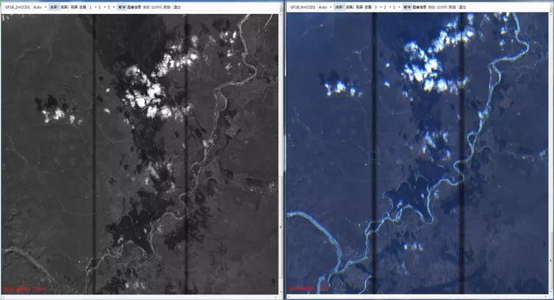 高分一号02、03、04星相机的量化位数从01星的10比特提高到了12比特,辐射分辨率大幅提高。此外,12比特量化位数能够有效改善图像的动态范围,图像拉伸后可反映更多细节,图像质量也显著提高。