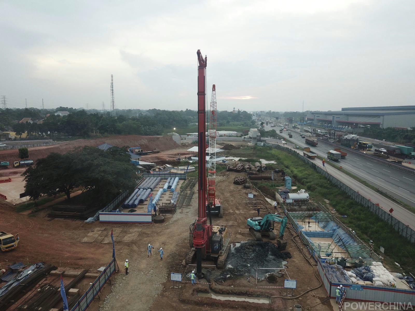 雅万高铁2号特大桥全长32960米,是全线最长的一座桥梁。本次开钻的钻孔桩为2号特大桥557号墩12号桩位,位于雅加达至万隆高速公路匝道圈内,前期桥梁桩基试桩工作也在此处实施,试桩达到预期效果。此次施工的钻孔桩,桩径1m,桩长46m,采用SR360型旋挖钻机进行成孔作业。