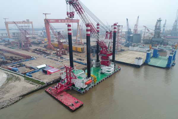 5月18日,中国交建所属振华重工自主研发的海上风电施工平台“龙源振华叁号”在江苏南通举行交付仪式。该平台拥有全球最大起重能力,双钩最大吊重达2000吨。