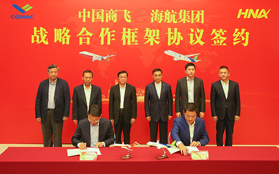 2018年6月2日,中国商飞公司与海航集团签署战略合作框架协议,双方将在飞机采购和运行、航空市场开拓、航空维修与客户服务等领域全面合作,共同推进国产民机市场化、规模化经营。