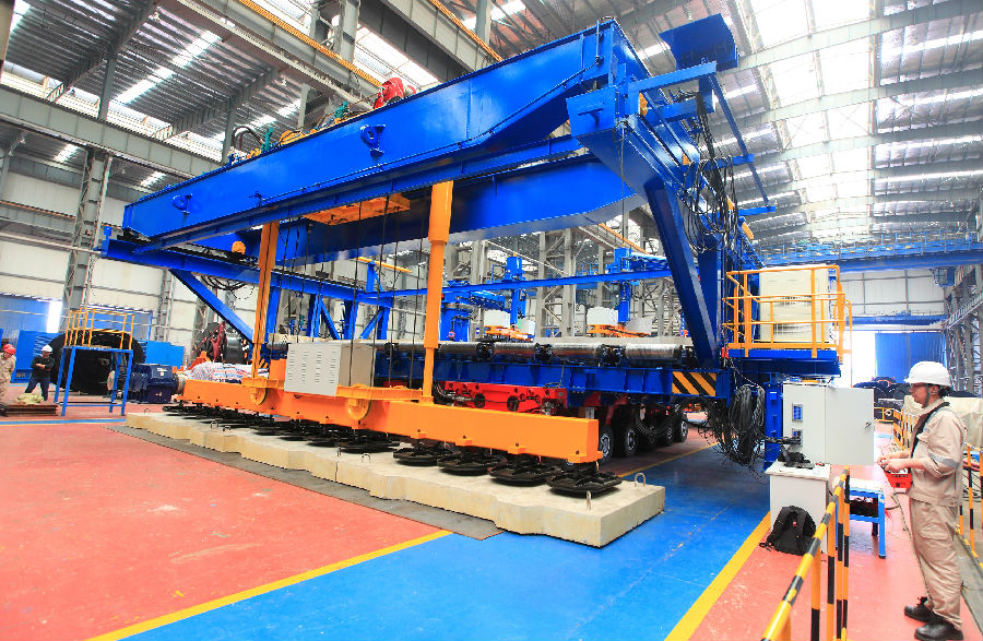近日,由中国交建所属振华重工自主设计制造的第一代智能铺路机器人开始进行安装调试。