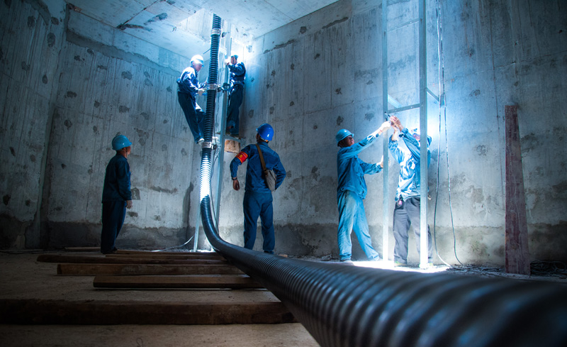 南方电网广东珠海供电局工作人员在220千伏加珠线线路工程隧道内敷设电缆