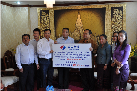 老挝溃坝灾情发生后,引起国际社会广泛关注,中国电建作为在老最大的中资企业,首批进入灾区开展救援,为受灾村民提供最有效的帮助。截止目前,员工自发捐款捐物,约16.25亿老挝基普(约129.82万人民币)。