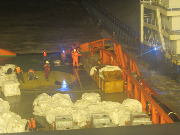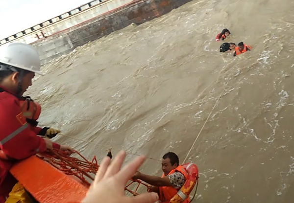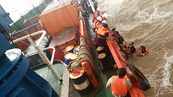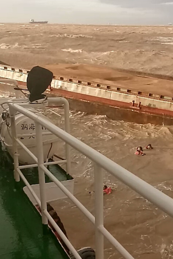 8月15日17:50,“润海241”轮到达遇险运砂船附近展开营救。