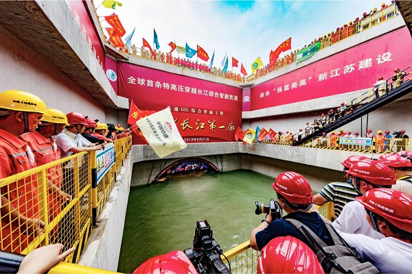 该工程是全球首次将大直径盾构隧道应用于电力管廊工程,是世界上电压等级最高、输送容量最大、技术水平最先进的超长距离GIL创新工程,也是长江上首条包含了电力、通信、有线电视等市政管线的综合管廊,被称为“万里长江第一廊”,它创造了电力工程建设和隧道盾构施工史上的多项世界第一。