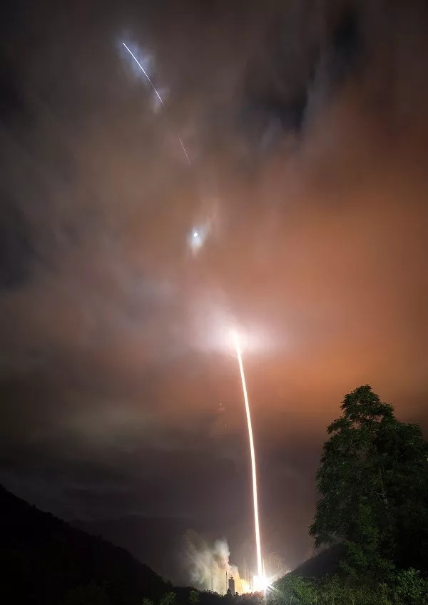 长征三号乙/远征一号运载火箭航迹闪耀夜空