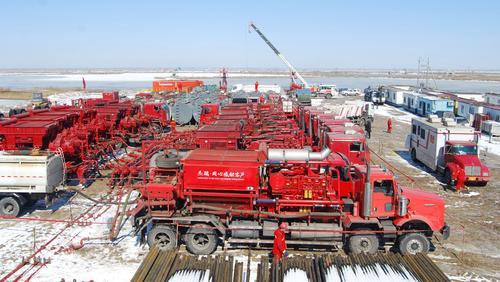 大庆油田大压裂突围致密油藏。图为大压裂现场