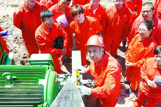 大庆采二技师协会量体裁衣重实践。图为培训现场,员工正在学习皮带调整方法