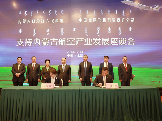 2018年10月15日,在支持内蒙古航空产业发展座谈会上,中国商飞公司与内蒙古自治区签署战略合作框架协议,在航空产业领域建立全面的战略合作关系。