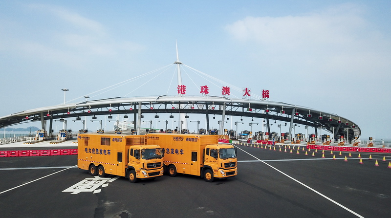 早在港珠澳大桥于2009年12月15日正式动工以来,南方电网广东珠海供电局便成立了港珠澳大桥供电专项服务小组,九年间一直跟随建设进度及时满足各项用电需求。南方电网广东电网公司在人工岛上布局建设110千伏港珠澳大桥人工岛输变电工程,该工程2017年11月竣工,投产后与珠海电网主网可靠连接。据悉,人工岛变电站与大桥专用变电站互为备用,形成了2套220千伏带110千伏变电站的手拉手式“双保险”供电的可靠性,该工程主要承担对人工岛及港珠澳大桥本体工程的供电任务,同时为粤港澳三地的综合运输体系和高速路网提供电力保证,助力粤港澳大湾区科学发展。