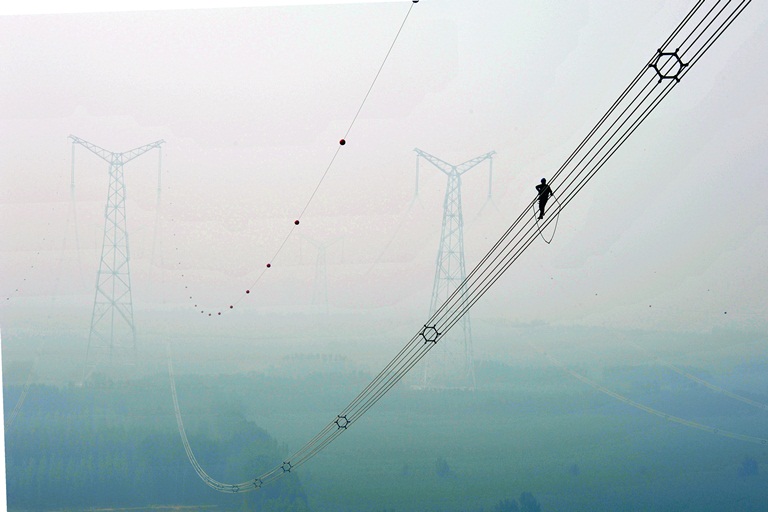 这里山东电力年度检修的重点工作——±660千伏银东直流系统的线路检修现场。