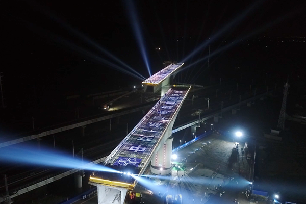 11月4日,由中国交建一航局承建的国内高铁最大跨度的悬灌浇注连续梁——鲁南高铁肖家庄特大桥连续梁转体成功,再次刷新国内高速铁路跨既有线施工纪录。