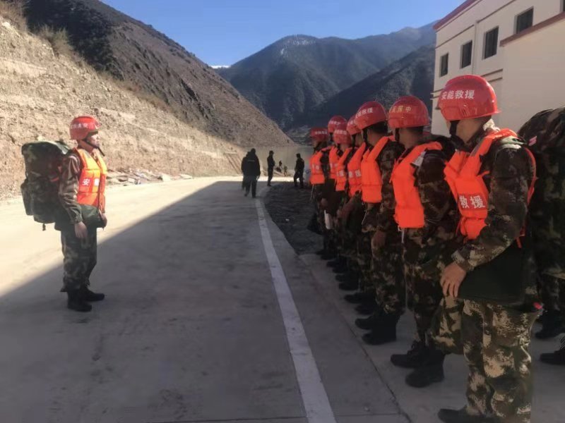 金沙江再次发生堰塞湖险情后,中国安能建设集团有限公司(原武警水电部队)根据国家应急管理部和国资委党委要求,迅速组织抢险梯队前出一线排险。11月7日,中国安能筹备组成员、临时党委常委曹厚琪(原武警水电部队副司令员)带技术专家组成员从北京飞赴白格堰塞湖抢险现场。与此同时,中国安能第三工程局抽组由筹备组组长梁建忠带队的73名地质、爆破、重机操作手等专业技术人员,分两个梯队从成都星夜兼程赶赴抢险一线。