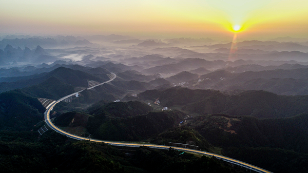 百色至河池高速串联起广西众多旅游资源,被誉为“广西最美高速”。建设过程中,中交团队突出绿色环保理念,坚持工程建设与生态建设同步推进。项目团队首次引进市政绿化手段,采用生态长袋法,对石头山进行“美容”;在野生动物保护区段公路下方建设特别涵洞,作为动物通道,方便野生动物自由通行。