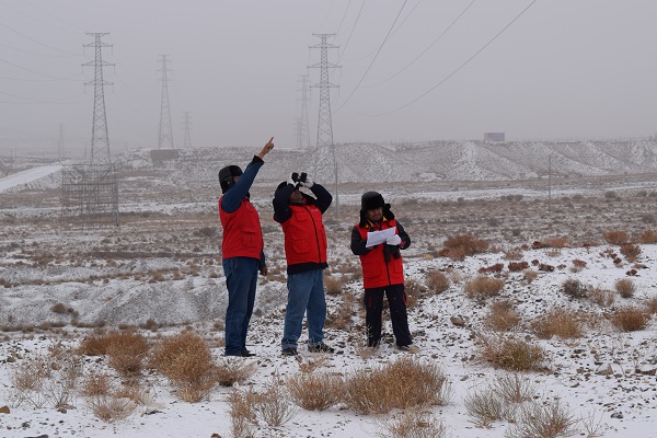 近日,新疆喀什迎来大雪天气,喀什供电公司组织员工特巡重要的输电线路,确保电网可靠运行。