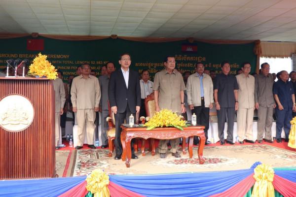 洪森在讲话中对中国为柬埔寨基础设施建设提供的支持与帮助表示感谢。他表示,中国是柬埔寨的好朋友,好伙伴。在中国的帮助下,柬埔寨已建成数千公里的道路和桥梁,打通了柬国内交通网络,实现了与邻国交通互联,同时,实实在在地带动了经济发展,改善了人民生活,希望中柬双方继续加强合作,推动柬埔寨道路、桥梁、机场、码头等领域开发建设,进一步提高柬埔寨综合竞争力。