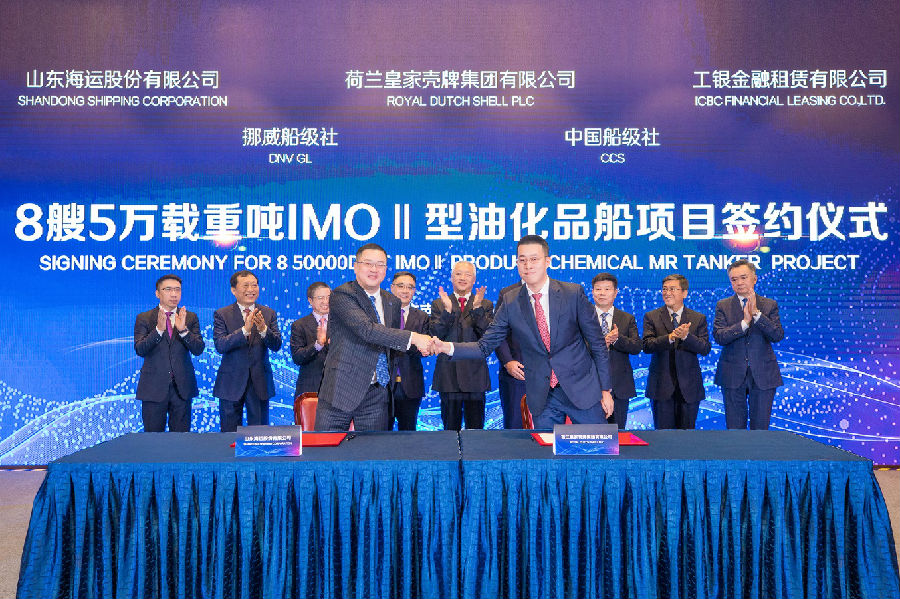 近日,山东海洋集团所属山东海运与世界500强企业、全球最大的汽车燃油和润滑油零售商、全球最大的化工产品经营者之一荷兰皇家壳牌集团在济南签署8艘5万载重吨IMOⅡ型油化品船期租租约。