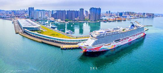 一艘邮轮停靠在山东港口集团青岛国际邮轮母港。(资料照片)