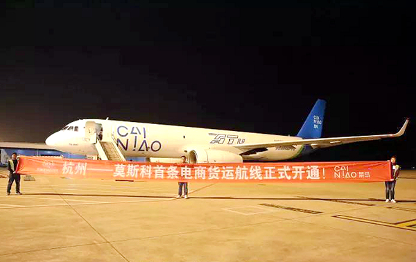 10月30日凌晨3时,一架满载快递包裹的“菜鸟号”货机从杭州萧山国际机场起飞,12个小时后抵达莫斯科机场,标志着杭州到莫斯科首条直达电商货运航线正式开通。