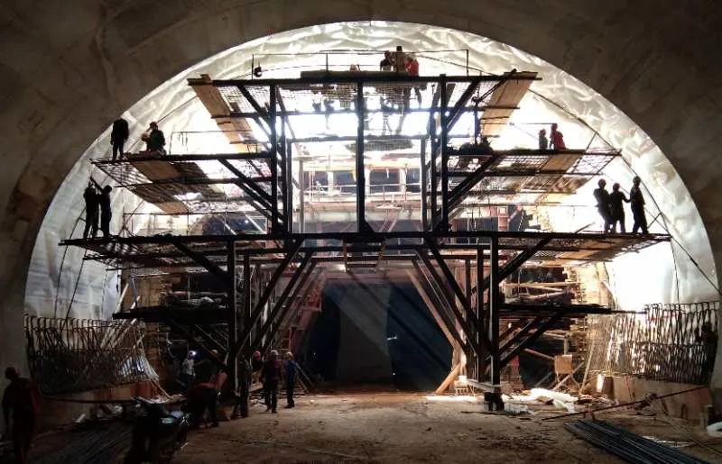 和乐隧道位于云南省玉溪市境内,全长7.9公里,是中老铁路玉溪至磨憨段最北端的第一个长大隧道,被建设者称为玉磨铁路“咽口”隧道。隧道穿越两条断层破碎带,应力转换复杂,围岩极不稳定且富水,溜坍、软岩大变形和突泥、涌水频发,安全风险极高、施工难度极大,是全线重点控制性工程之一。在与复杂地质的博弈中,建设单位和施工单位组织专家组现场会诊,根据围岩变化情况,合理选择开挖工法,优化支护参数,加强工序写实分析,在确保安全质量的同时,提高了工效。