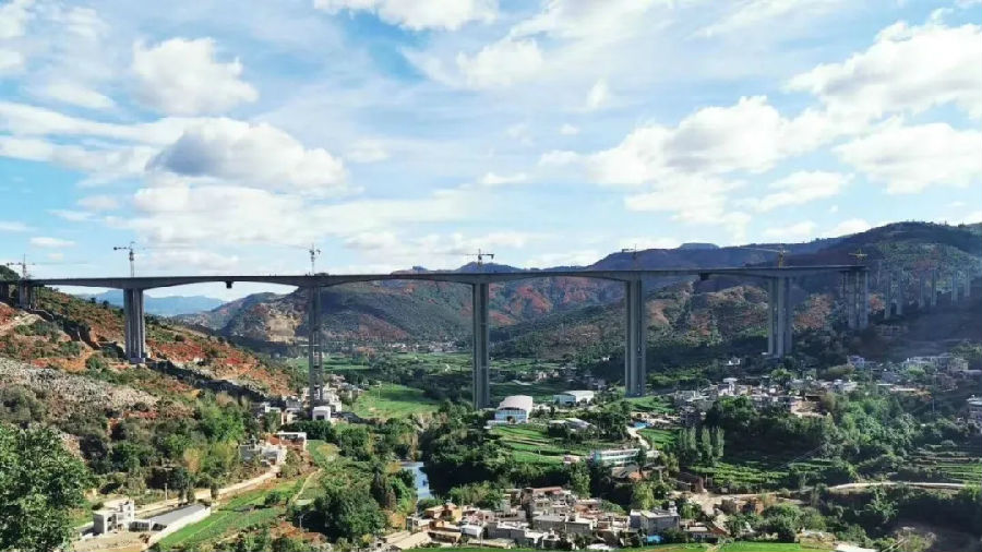 近日,由云南交投集团投资建设的武倘寻高速公路控制性工程、武倘寻高速公路最大桥梁——木板河特大桥主跨顺利合龙,为项目实现“能通全通”工程建设目标又迈进了一步。木板河特大桥位于富民县东村镇响石村,墩身最高127米,左幅长1129米,右幅长1132米,其中主桥部分有820米为连续刚构桥,单孔跨径160米,是目前云南省连续刚构桥中墩身高度较高,跨径较大的特大桥之一。