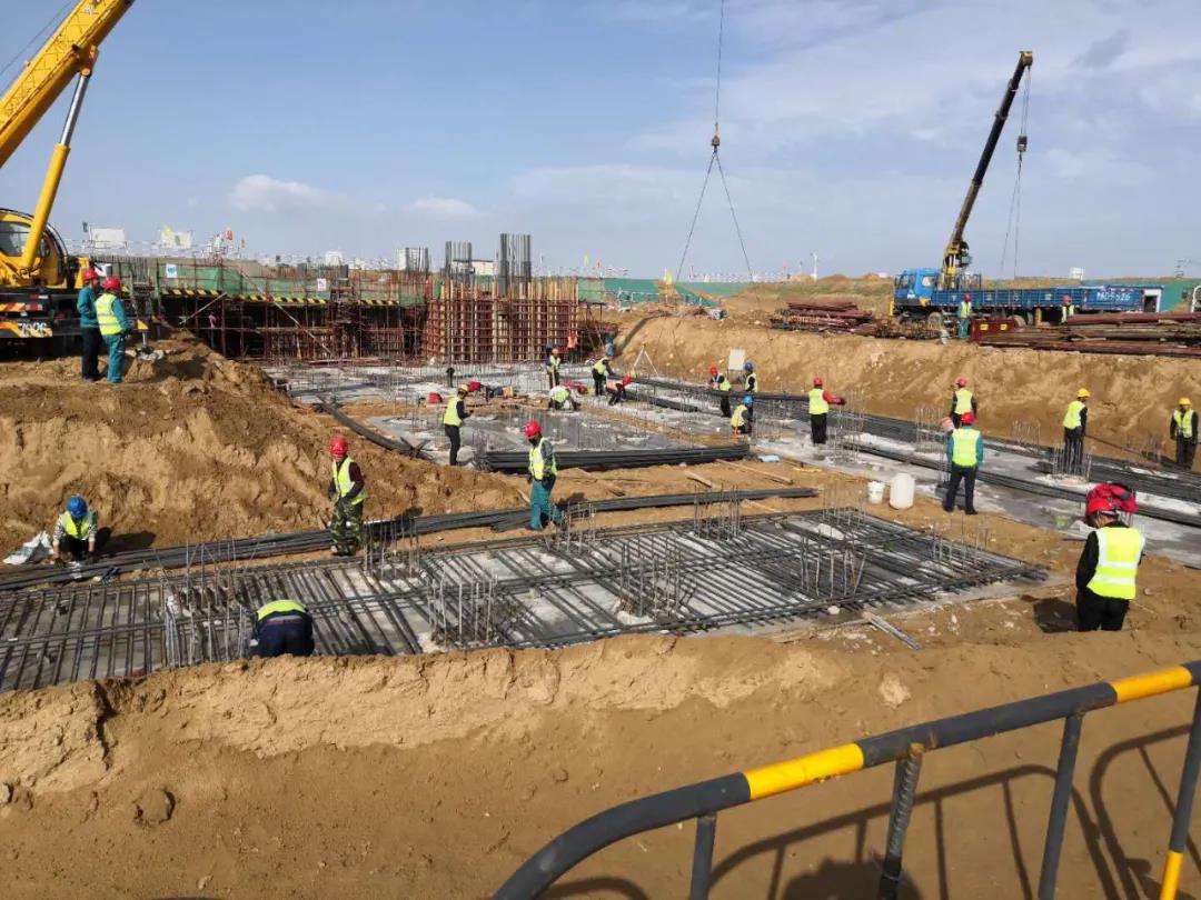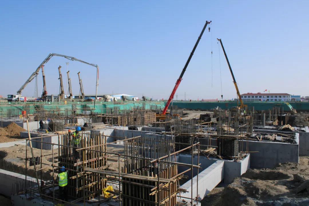 施工现场塔吊林立,机械轰鸣,所有参建者在各个作业点上,按照既定节点计划加班加点,抓紧施工,以确保项目按期投产,为自治区经济社会发展作出应有贡献。
