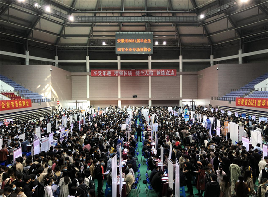 近日,安徽省国资委与安徽省教育厅联合主办的“安徽省2021届毕业生国有企业专场招聘会”在安徽大学举行。25户省属企业所属53个法人单位参加了招聘活动,为高校毕业生提供就业岗位2174个。来自安徽大学、合肥工业大学等省内高校超过2800名毕业生到场应聘,其中400余人与用人单位初步达成就业意向。
