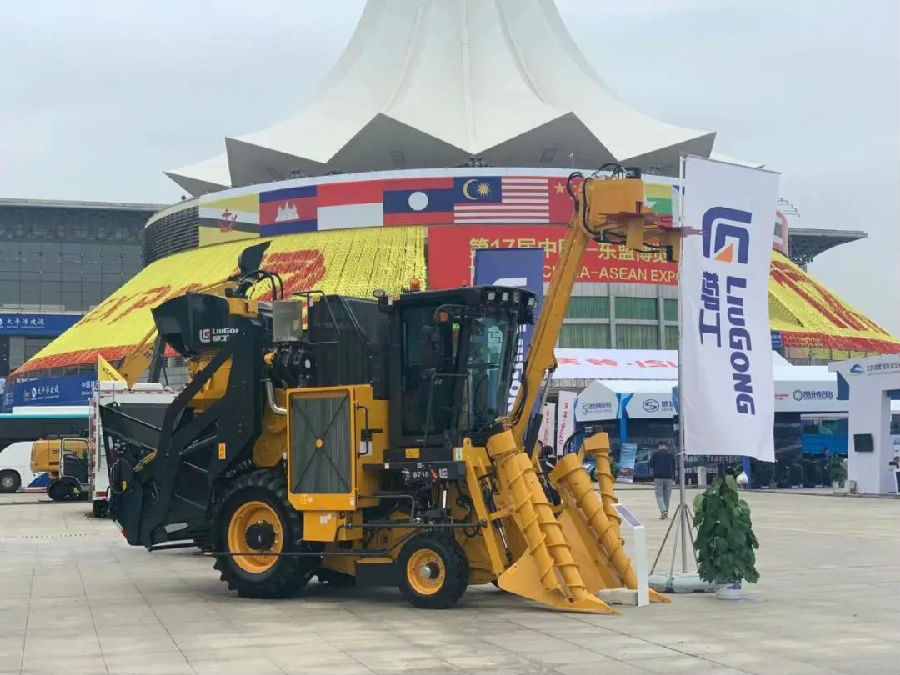 东博会上,柳工除了展出装载机、挖掘机、叉车、柳工路机20周年特殊涂装纪念款的压路机等设备外,柳工新上市的2款甘蔗收获机和新品拖拉机首次在东博会亮相,吸引了众多嘉宾的目光。