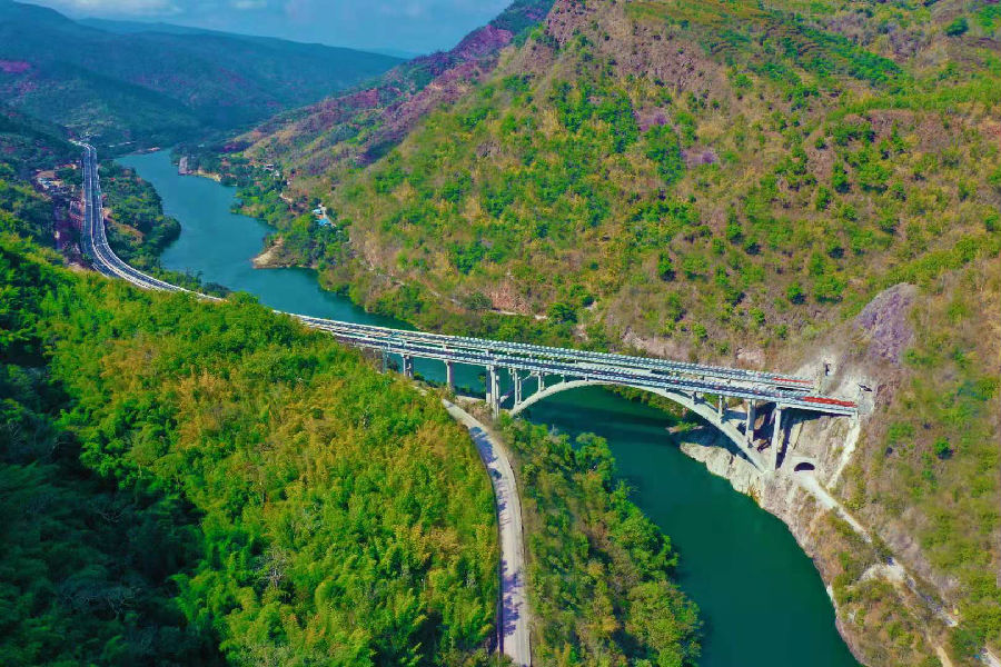 在项目建设过程中,积极将BIM技术运用在设计施工、智能分析、三维直观检测控制、信息化程度和管理水平等方面提升效益。运用波纹钢拼装式连拱明洞结构设计施工研究实现了工程经济性与生态环保的双重建设目标。结合沿途自然环境、地域民族文化等因素,开展环境保护及水土保持工作。采用路基改桥梁和涵洞方式优化亚洲象迁徙通道,减少对亚洲象迁徙通道的影响。运用桥面径流收集处理系统,有效减少线路对河流及水生生物的危害等。以最小破坏植被、最大限度保护生态最快地恢复生态,践行“绿水青山就是金山银山”绿色发展理念。2020年以来,面对疫情防控的冲击,项目公司党支部以党旗为引领,落实好上级党委相关部署要求,积极与地方政府联系做好联防联控措施,一手抓好疫情防控、一手抓好复工复产,迅速成立了3个进度管理工作组,1个征迁保障与矛盾纠纷协调组、1个资金后勤保障工作组,分段挂钩督导三隧三桥、梁板预制等控制性工程施工进度管理,驻扎项目建设一线,紧密联系项目工程施工点,做到“战疫”“复工”两不误,保障了项目的按期建成。