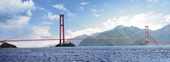 浙江舟山西堠门跨海大桥,2009年建成通车,是世界第一跨度的钢箱梁悬索桥,体现了21世纪中国桥梁建设的顶尖水平,被誉为“神州第一桥”。