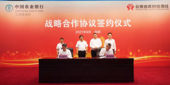 9月6日,云南省农村信用社联合社与中国农业银行云南省分行签署战略合作协议,进一步发挥国有银行和地方金融机构的优势,共同推动农业农村现代化建设,支持云南经济社会发展。根据协议,双方将本着“互惠互利、相互支持、协同合作、共同发展”的原则,在金融同业、乡村振兴、普惠金融、产品研发、零售业务等重点领域开展合作,实现共赢发展。