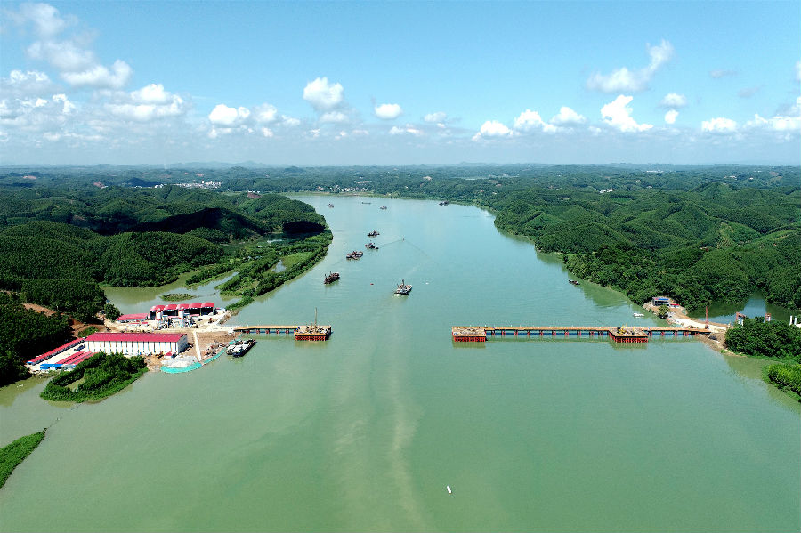 飞龙大桥位于南宁横州市平马镇与新福镇飞龙乡交界处,由北至南跨越郁江,全桥总长940米,通航主跨185米,是S210横县平马至灵山沙坪公路的关键控制性工程。飞龙大桥建成后,将超越日本新名神高速公路安威川大桥,成为同类型世界最大跨径波形钢腹板组合连续刚构桥。