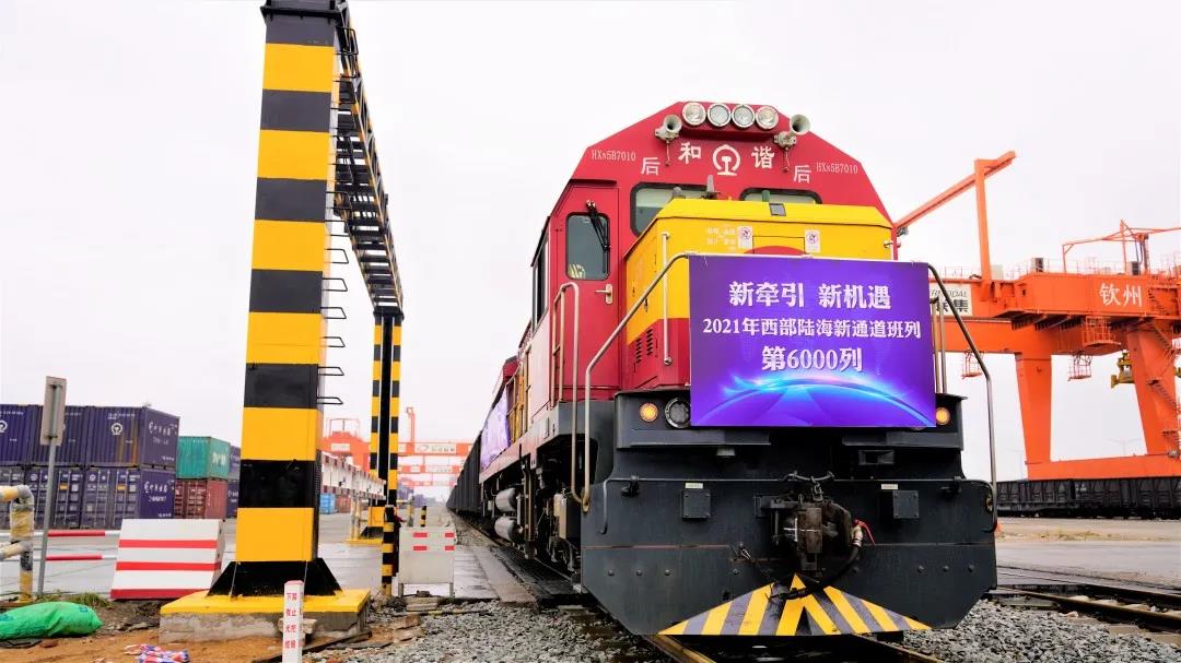 2021年12月28日,随着洪亮的汽笛声响起,全年第6000列西部陆海新通道正式发车,圆满完成年度开行任务。开行量由第一年的178列,到2021年6000列,增长了近33倍,为近年我国增速最快的国际班列。