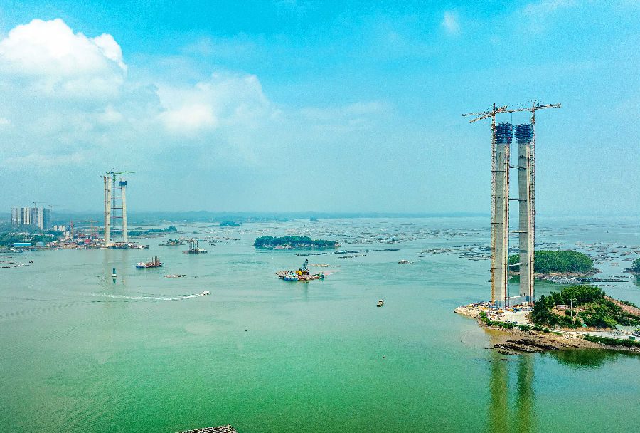 在建设者合力攻坚下,龙门大桥项目主塔建设节节攀升:5月7日,大桥西主塔率先实现封顶;5月20日,大桥东主塔也顺利实现封顶,为龙门大桥进入缆索系统施工阶段奠定坚实基础。相关负责人表示,将克服海上施工组织复杂、技术难度大、地质环境复杂等困难,平稳优质推进龙门大桥建设,全力打造北部湾百年品质工程。