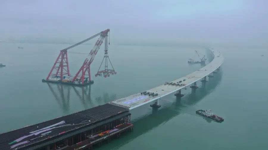 随着厦门第二东通道——翔安大桥A3标海中段最后一榀钢箱梁完成吊装,翔安侧海中桥梁与陆地主线桥在鹭岛之滨上演“海陆之吻”