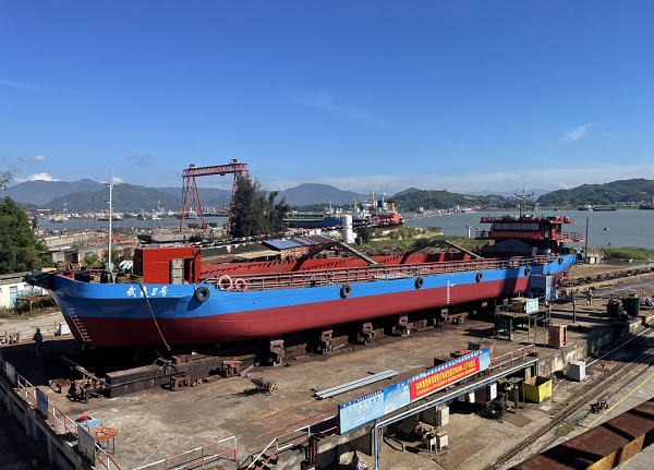 8月10日上午,福宁重工建造的58米内河集散两用增程式电动货船“武夷2号”顺利下水。该船长58.00米,船宽10.50米,型深2.65米,设计吃水1.85米,装箱量(1CC) 21箱,载货量可达765.304吨。该型船为增程式混合动力推进,选用宁德时代锂电池系统和中船集团赛思亿公司电控系统,其电池容量为1540kWh,续航力为720海里;主要航行于国内内河B、C级航区,用于运载集装箱、干杂货及干散货。该艘58米内河增程式电动货船作为福建省首台电动货船,是福建船政和南平闽江航运切实推进碳达峰、碳中和工作系列重要论述落地落实的生动实践,是助力生态福建和电动福建建设的重大举措。该船的顺利下水,是双方密切配合、通力合作的务实成果,为后续船舶交付奠定了坚实基础。