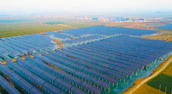 武城渔光互补项目二期位于山东省德州市武城县,总投资约5.9亿元,建设规模100兆瓦,涉及武城镇、鲁权屯镇、四女寺镇等在内的31个自然村。项目全容量投产后,年均发电量约1.58亿千瓦时,可节约标煤约4.76万吨,减少二氧化碳排放约12.95万吨,节能和环保效益显著。项目二期因地制宜利用光伏阵列下方空地及间隙开展农业种植养殖,借光生“金”,形成“板上发电、板下种养”的土地立体化综合利用模式,实现了光伏与农业协同发展、产业发展与生态文明协同推进的共赢局面,有力推动地区能源结构转型升级,激发农村经济新活力,为助推乡村振兴、生态富民注入绿色动能。