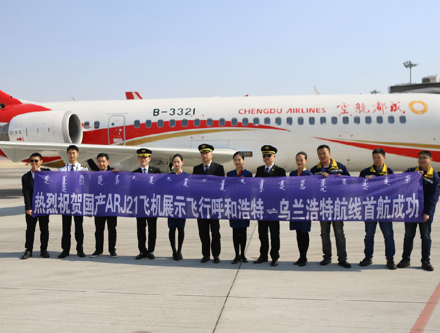 3月20日,我国自主研制的ARJ21-700喷气客机圆满完成呼和浩特=乌兰浩特往返航线运行,这意味着其在内蒙古的首次航线展示运营正式拉开帷幕。