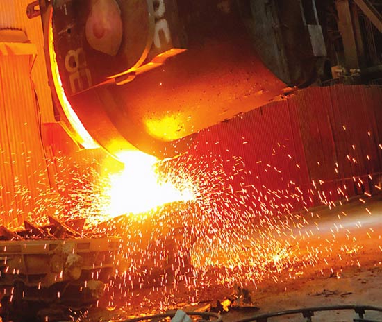 5月24日,宝钢股份上海梅山钢铁有限公司第一炼钢区域,我国首台250吨智能铸造起重机正在进行钢水吊运作业。